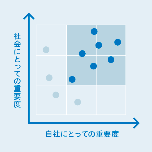 | Step2 | 中長期的な視点で自社にとっての重要度と社会にとっての重要度を評価(スコアリング) |