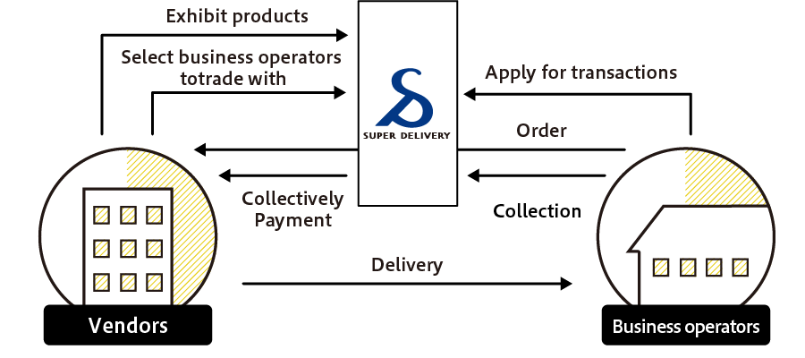 "SUPER DELIVERY" is a wholesale purchasing site for manufacturers of apparel and general good, and businesses such as retail stores, restaurants or hair salons.